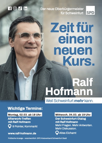Ich weiß, wie Schweinfurt funktioniert. Ich kenne die Sorgen, die Chancen und die Menschen hinter den Kulissen. Und ich weiß: Politik alleine bewegt nichts – man braucht Netzwerke, Mut und glaubwürdiges Engagement.